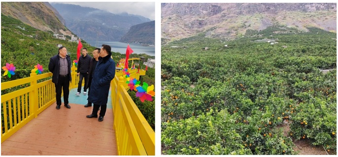 金沙村地处金沙江溪洛渡水电站旁边,近年来以优质脐橙产业发展为抓手,以乡村文旅发展为契机,乡村振兴日新月异,农民收入逐年增加,在脐橙园建设的旅游步道成为网红,声誉远播,名声响亮,推动了乡村振兴和乡村文旅发展,促进了农村第三产业的发展。杨洪清对青杜坪村和金沙村取得的成绩高度赞誉,希望两村继续努力,百尺竿头更进一步,在产业振兴的基础上,进一步推动乡村文旅发展,为农民增收拓展新路。