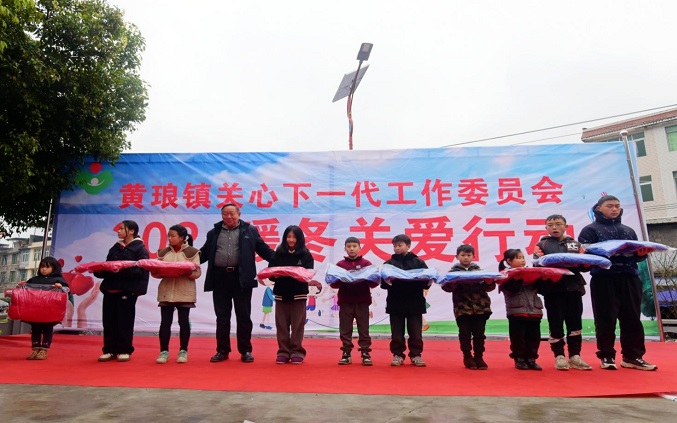 22日中午,杨洪清会长一行参加了黄琅镇关工委送温暖活动,为黄琅镇农村困难中小学生赠送了100件加绒冲锋衣。