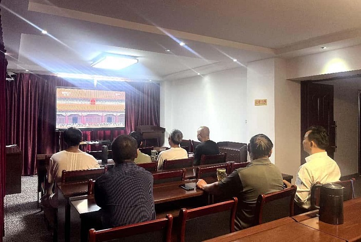 上午8点50 时许,协会党支部书记、会长杨洪清,协会党支部组织委员、协会副秘书长丁良才,协会党支部宣传委员、副秘书长李友明,协会党员干部胡一平、向国清、吉克曲日参加了集中观看9·3 阅兵仪式电视直播,协会非党人员李文忠、黄忠于等应邀参加了活动。